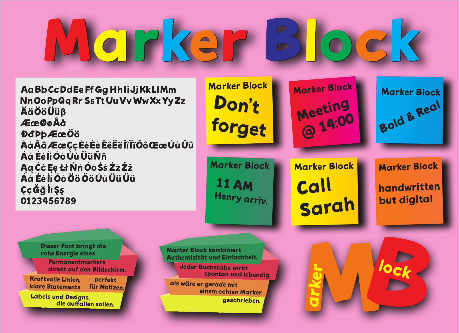 Kraftvolle, blockige Markerschrift mit handgemachtem Charakter.